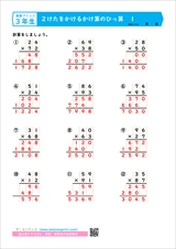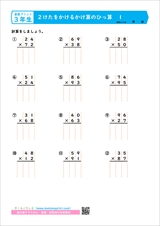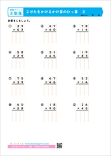 算数3年生「2けたをかけるかけ算のひっ算」のプリントです。
