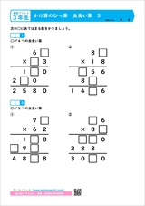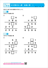 算数3年生「2けたをかけるかけ算のひっ算」の単元では、テストで虫食い算が出題されることがあります。