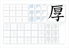こくご漢字 読み (コウ)・あつ―い 画数 9画部首 がんだれ 用例①厚紙 厚着 厚地 厚手 重厚 分厚い 厚いかべ 厚い本 ②温厚 厚意 厚情 厚生 ③厚顔 5年生で習う漢字2024.7.19このページの使い方 ① 一覧にある漢字をクリックすると、漢字の個別ページにジャンプします。 リンク先には、「読み」「画数」「部首」「用例」と「なぞり書きプリント」があります。 ② ...漢字プリント 一覧ページ2025.5.15令和6年改訂版に対応しているページです。 漢字プリントは順次作成、公開してまいります。 小学6年生 https://kodomoprint.com/archives/26203 h... サイト内検索