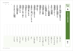 こくご 小6東書 漢字 【東京書籍】6年漢字プリント 1学期④ 小学校6年生、漢字プリントの東京書籍版です。 「三字以上の熟語の構成」を参考にしています。 令和6年改訂版に対応しています。 もくじ1学期④ 三字以上の熟語の構成新出漢字練習プリントテストその他のプリント 1学期④ 三字以上の熟語の構成 新出漢字 熟 賃 盟 警 署 蚕 善 臨 宇 宙 欲 穀 練習プリント テスト その他のプリント 【東京書籍準拠】小6漢字プリント 一覧ページ2025.1.30小学校6年生、漢字プリントの東京書籍版一覧ページです。 令和6年改訂版に対応しています。 1学期 1学期① 1学期② 1学期③ 1学期④ 1学期⑤ 1学期⑥ 1学期⑦ 1... サイト内検索