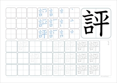 こくご漢字評 読み ヒョウ画数 12画部首 ごんべん 用例①悪評 好評 書評 寸評 世評 選評 総評 定評 評価 評議 評決 評定(ひょうてい・ひょうじょう) 評判 品評会 風評 不評 5年生で習う漢字2024.7.19このページの使い方 ① 一覧にある漢字をクリックすると、漢字の個別ページにジャンプします。 リンク先には、「読み」「画数」「部首」「用例」と「なぞり書きプリント」があります。 ② ...漢字プリント 一覧ページ2025.5.15令和6年改訂版に対応しているページです。 漢字プリントは順次作成、公開してまいります。 小学6年生 https://kodomoprint.com/archives/26203 h... サイト内検索