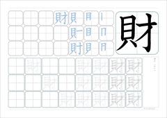 こくご漢字財 読み ザイ (サイ)画数 10画部首 かいへん 用例①家財 財貨 財界 財産 財政 財団 財布 財力 散財 私財 資財 借財 文化財 5年生で習う漢字2024.7.19このページの使い方 ① 一覧にある漢字をクリックすると、漢字の個別ページにジャンプします。 リンク先には、「読み」「画数」「部首」「用例」と「なぞり書きプリント」があります。 ② ...漢字プリント 一覧ページ2025.5.15令和6年改訂版に対応しているページです。 漢字プリントは順次作成、公開してまいります。 小学6年生 https://kodomoprint.com/archives/26203 h... サイト内検索
