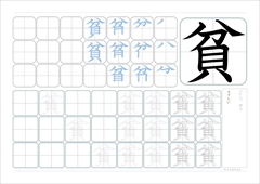 こくご漢字貧 読み (ヒン) ビン・まず―しい 画数 11画部首 かい 用例①極貧 清貧 赤貧 貧苦 貧者 貧相 貧民 貧ぼう 心が貧しい 貧しい生活②貧血 貧弱 5年生で習う漢字2024.7.19このページの使い方 ① 一覧にある漢字をクリックすると、漢字の個別ページにジャンプします。 リンク先には、「読み」「画数」「部首」「用例」と「なぞり書きプリント」があります。 ② ...漢字プリント 一覧ページ2025.5.15令和6年改訂版に対応しているページです。 漢字プリントは順次作成、公開してまいります。 小学6年生 https://kodomoprint.com/archives/26203 h... サイト内検索