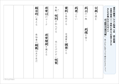 こくご小5光村漢字【光村図書】5年漢字プリント 1学期⑤ 小学校5年生、漢字プリントの光村図書版です。「古典の世界(一)」「目的に応じて引用するとき」「みんなが使いやすいデザイン」を参考にしています。もくじ1学期⑤新出漢字練習プリントその他のプリント1学期⑤新出漢字武 士資 査性 非 総練習プリント その他のプリント【光村図書準拠】小5漢字プリント 一覧ページ2025.1.28小学校5年生、漢字プリントの光村図書版一覧ページです。 令和6年改訂版に対応しています。 1学期 1学期① 1学期② 1学期③ 1学期④ 1学期⑤ 1学期⑥ 1学期⑦ 2学...5年生で習う漢字2024.7.19このページの使い方 ① 一覧にある漢字をクリックすると、漢字の個別ページにジャンプします。 リンク先には、「読み」「画数」「部首」「用例」と「なぞり書きプリント」があります。 ② ... 検索検索