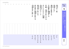 こくご小5光村漢字【光村図書】5年漢字プリント 1学期⑤ 小学校5年生、漢字プリントの光村図書版です。「古典の世界(一)」「目的に応じて引用するとき」「みんなが使いやすいデザイン」を参考にしています。もくじ1学期⑤新出漢字練習プリントテストその他のプリント1学期⑤新出漢字武 士資 査性 非 総練習プリントテスト その他のプリント【光村図書準拠】小5漢字プリント 一覧ページ2025.1.28小学校5年生、漢字プリントの光村図書版一覧ページです。 令和6年改訂版に対応しています。 1学期 1学期① 1学期② 1学期③ 1学期④ 1学期⑤ 1学期⑥ 1学期⑦ 2学...5年生で習う漢字2024.7.19このページの使い方 ① 一覧にある漢字をクリックすると、漢字の個別ページにジャンプします。 リンク先には、「読み」「画数」「部首」「用例」と「なぞり書きプリント」があります。 ② ... サイト内検索