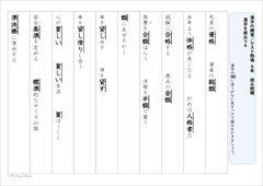 こくご小5東書漢字【東京書籍】5年漢字プリント 2学期② 小学校5年生、漢字プリントの東京書籍版です。「漢字を使おう4」を参考にしています。もくじ2学期②新出漢字練習プリントその他のプリント2学期②新出漢字格 額 貸 貧 準 墓 祖 迷 述練習プリント その他のプリント5年2学期 漢字50問テスト 攻略プリント【東書】2024.11.45年生2学期 漢字50問テストの攻略プリント(東京書籍版)です。 「お手本」と「テスト」に分かれており、それぞれAパートとBパートを作成しています。 Aパート(全5枚)では、2学期...【東京書籍準拠】小5漢字プリント 一覧ページ2025.1.28小学校5年生、漢字プリントの東京書籍版一覧ページです。 令和6年改訂版に対応しています。 1学期 1学期① 1学期② 1学期③ 1学期④ 1学期⑤ 1学期⑥ 1学期⑦ 1...5年生で習う漢字2024.7.19このページの使い方 ① 一覧にある漢字をクリックすると、漢字の個別ページにジャンプします。 リンク先には、「読み」「画数」「部首」「用例」と「なぞり書きプリント」があります。 ② ... 検索検索