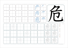 こくご漢字危 読み キ・あぶ―ない (あや―うい) (あや―ぶむ) 画数 6画部首 ふしづくり 用例①危ない場所 危ない道 危害 危機 危急 危険 危地 危難 6年生で習う漢字2025.6.136年生で習う漢字(191字)の一覧です。 字をクリックすると、「なぞり書きプリント」が出てきます。 胃 異 遺 域 宇 映 延 沿 恩 我 灰 拡 革 閣 割 株 干 巻 看 簡...漢字プリント 一覧ページ2025.5.15令和6年改訂版に対応しているページです。 漢字プリントは順次作成、公開してまいります。 小学6年生 https://kodomoprint.com/archives/26203 h... サイト内検索